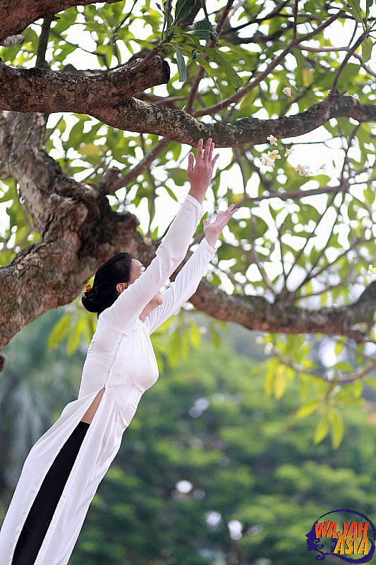 And I know that even an elderly Vietnamese woman, without the measurements of a Miss World contestant, is still very beautiful in Áo dài. She often looks more beautiful in Áo dài than many foreign women in other countries around the world. It is truly amazing. I am always proud of this, because I am Vietnamese and I can feel beautiful in our traditional costume. I don’t need to show off my body without clothing; I can still be beautiful in my modest way. Beauty is something you feel; it does not need explanation. So I will not say too much about myself, I prefer to let others feel it.”