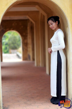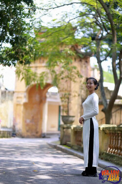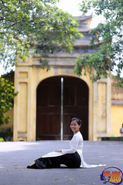 Allow me to introduce Miss Pham Hoang My. Some time ago, I asked her for a photoshoot, and she replied: “I will only pose in my own Áo dài.” Finally, here she is in a beautiful photoshoot at the Hanoi Citadel in Vietnam.